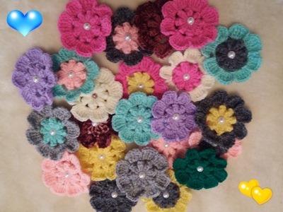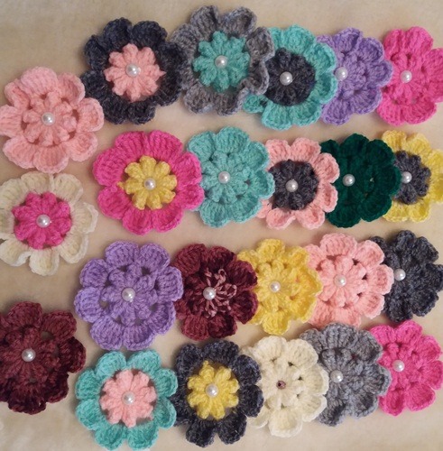 Μικρα ομορφα λουλουδια σε διαφορα χρωματα με ακρυλικα νηματα και στολισμενα με χαντρες.Ιδανικα για να διακοσμησουν τσαντες,μαξιλαρια ,μπομπονιερες, εσαρπες, κασκολ ,ρουχα και φυσικα μπορουν να χρησιμοποιηθουν σε διαφορες χειροποιητες δημιουργιες.